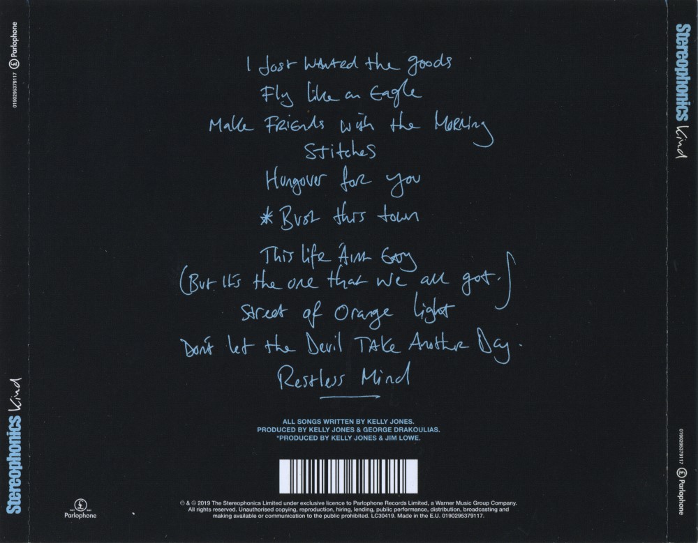 Kind is the eleventh studio album by Welsh rock band Stereophonics released on 25 October 2019 on Parlophone Records, nearly two years after their previous album, Scream Above the Sounds. Recorded over an eleven-day period between 29 June and 9 July 2019 at The Ramsbury Brewery & Distillery in Marlborough, Wiltshire, the album was produced by lead singer and guitarist Kelly Jones and George Drakoulias. On 15 August the band debuted the song "Fly Like an Eagle" on Radio X and released the official music video for the track. On 18 September the single "Bust This Town" was released.