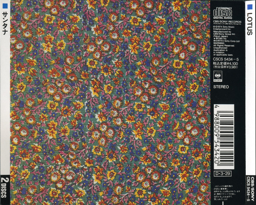 Lotus is a 1974 live album by the Latin rock band Santana, recorded at the Osaka Kōsei Nenkin Kaikan, Osaka, Japan in July 1973, during their Caravanserai Tour. The Welcome album recording sessions were completed shortly before this concert, and that album was later released in November. Lotus was originally released in 1974 as a triple vinyl LP in Japan only. This version of the album was later released internationally.