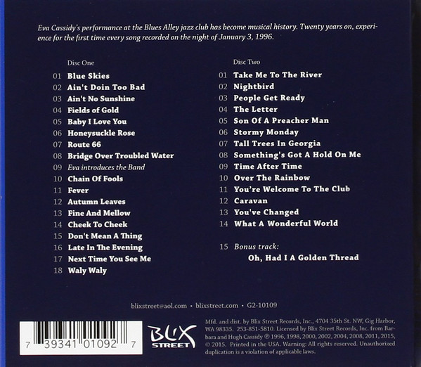 Eva Cassidy’s performance at the Blues Alley jazz club has become musical history. Twenty years on, experience for the first time every song recorded on the night of the 3rd January 1996.
