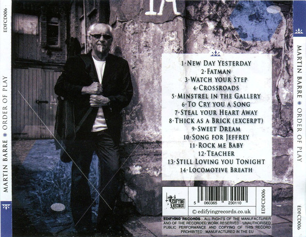 2014 release from the Jethro Tull guitarist. On ORDER OF PLAY, the band set up just as they were performing a live gig. Every song on the album is a first take. Martin's guitar playing has earned him a high level of respect and recognition; he was voted 25th best solo ever in the USA and 20th best solo ever in the UK for his playing on Jethro Tull's 'Aqualung'. His playing on the album Crest of a Knave earned him a Grammy award in 1988. As well as numerous Jethro Tull albums, Martin has worked with many other artists including Paul McCartney, Phil Collins, Gary Moore, Joe Bonamassa and Chris Thompson and has shared a stage with such legends as Hendrix, Fleetwood Mac, Pink Floyd and Led Zeppelin. As Jethro Tull are taking a long break from touring, Martin has put together a band to play the classic music from the Tull catalog. His band is a total commitment to give the Tull fans and a broader audience the chance to hear tracks not performed for many years.