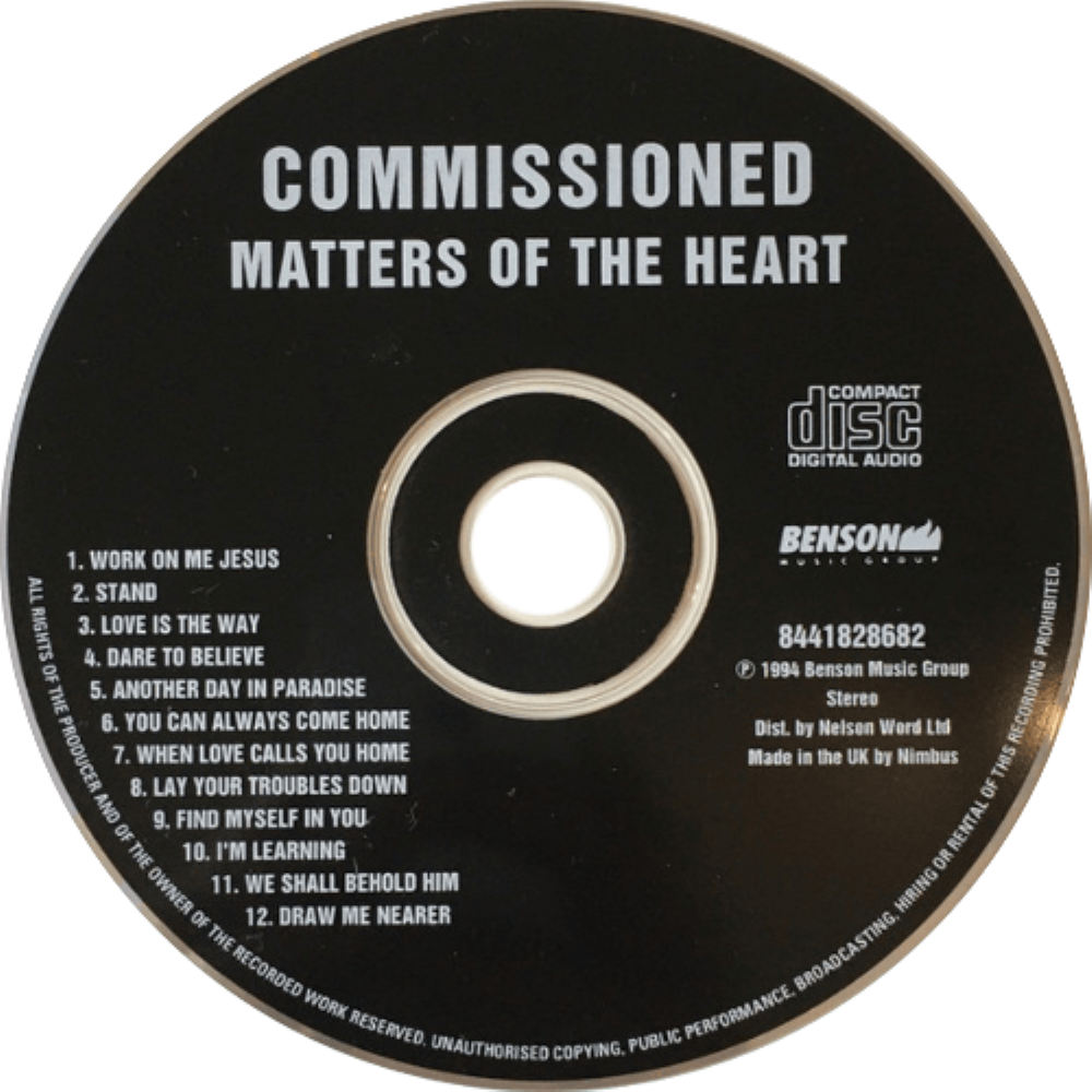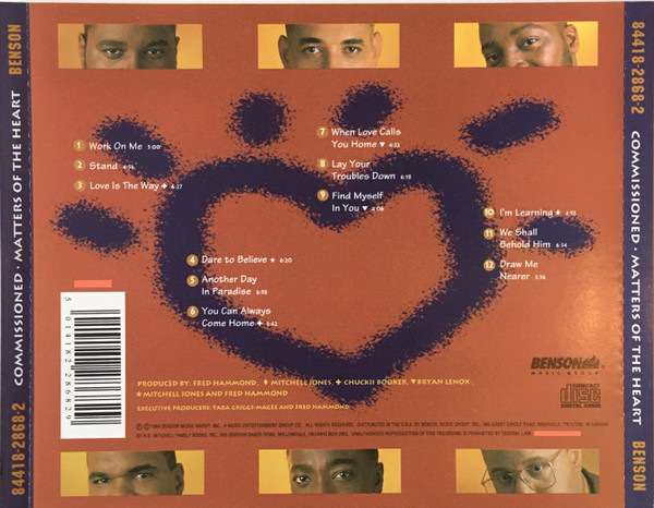 Album Description Available in: Matters Of The Heart, released in 1994 on Benson Records, is a gospel music album by American contemporary gospel music group Commissioned. It was the last album with Fred Hammond and Michael Williams - both of whom left after this album.