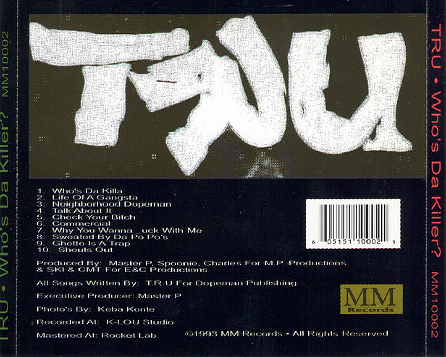 Album Description Available in: Who's da Killer? is the second album by TRU. It was released in 1993 through In-a-Minute Records and was produced by Master P, E-A-Ski, Charles, CMT and Spoonie. Tobin "TC" Costen's label, Me & Mine Entertainment, re-released the album for No Limit Records in 1998.