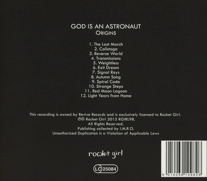 Origins is the sixth studio album by Irish post-rock band God Is an Astronaut. It was released on the Rocket Girl label on September 16, 2013 in the UK, and in the US a day later.