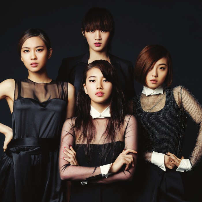 Miss A (미쓰에이), commonly stylized as miss A, is a four member Chinese-Korean girl group based in South Korea. They were formed by JYP Entertainment and are managed by AQ Entertainment. The group consists of: Fei, Jia, Min and Suzy. Their group name mainly stands for Miss Asia.